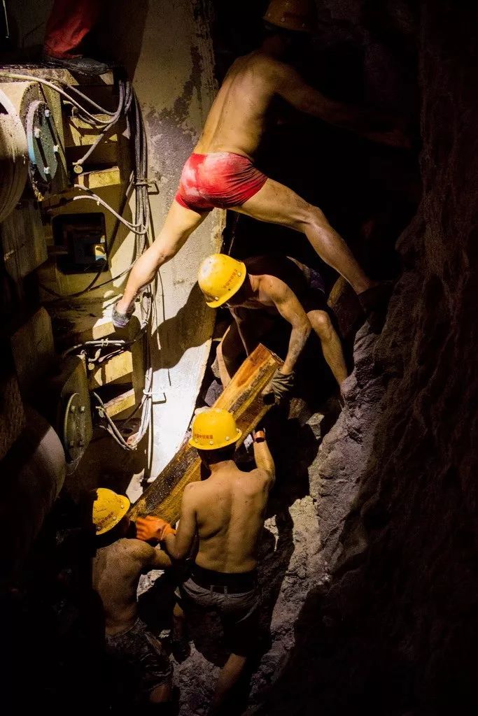 2015年10月16日3#支洞出现漏水,工友们借着手电筒和手机的光亮在全力抢险。
