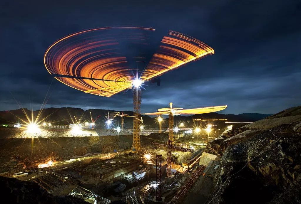 《工地之夜》——广西大虅峡水利枢纽工地。 缪宜江摄